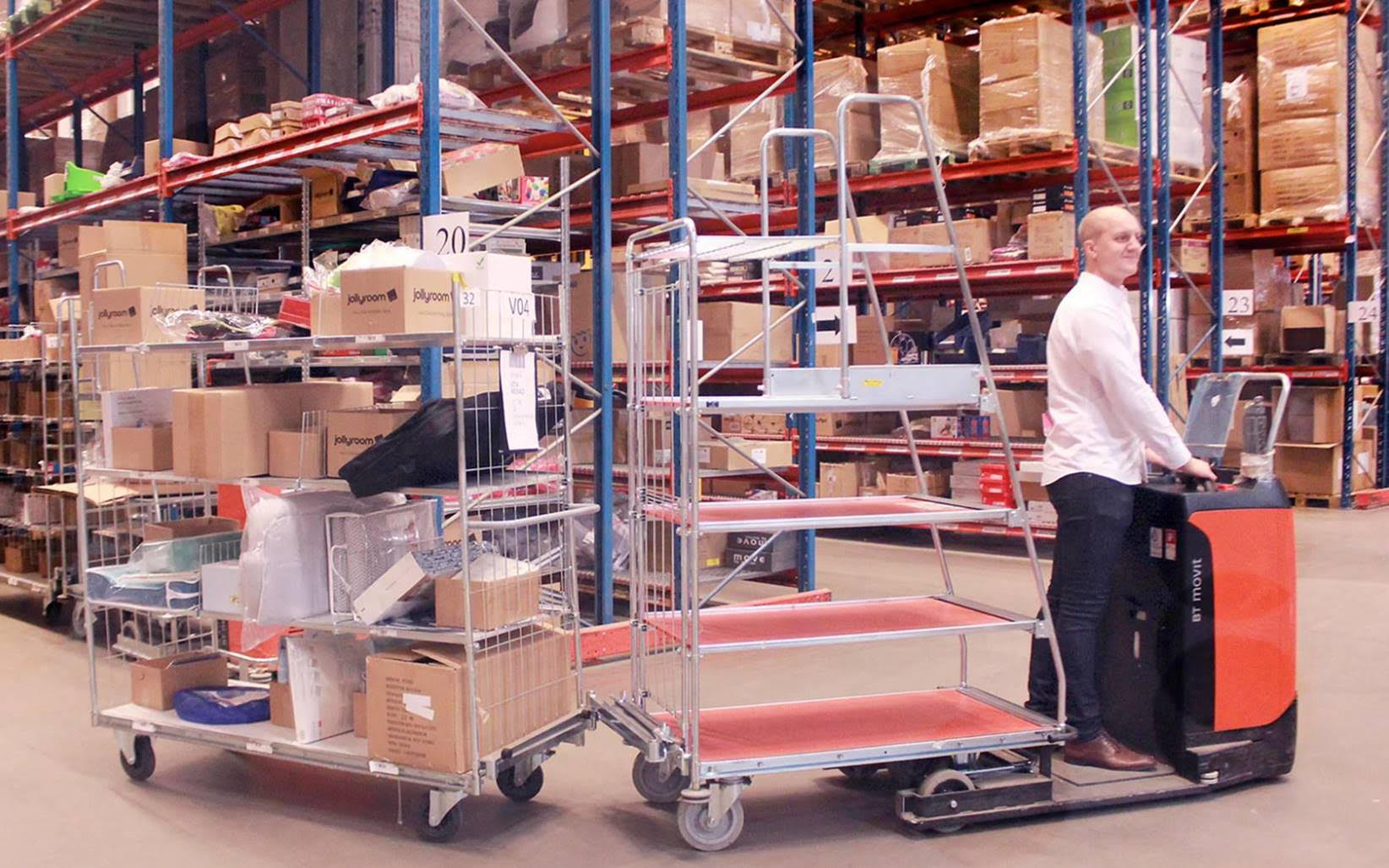 Desenhado sob pequenas estruturas de metal com divisórias ajustáveis ao propósito de facilitar o transporte e separação dos itens no momento de seleção (picking) e armazenamento.